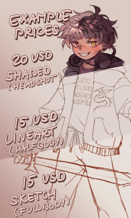 Send the respective price for the drawing here, then send me a confirmation of your payment through Twitter. Then I will start work on your order.Feel free to ask me any questions as well!links: